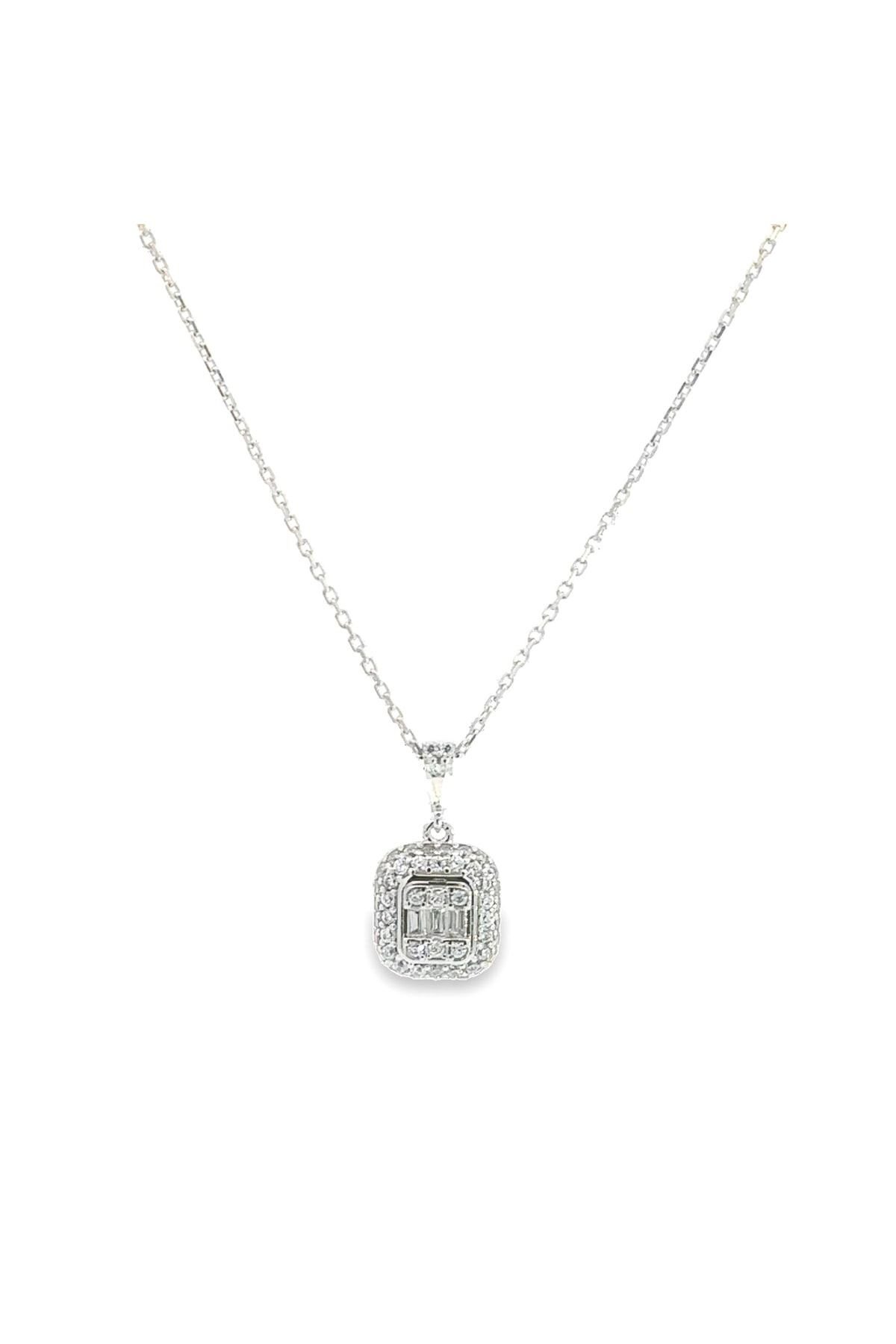 14 Ayar 2.73 Gr Baget Taşlı Beyaz Altın Gerdanlık Kolye - 1000408898