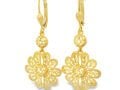 Oyma Çiçek Figürlü Uzun Ve Sallantılı Klasik Model Sarı Altın Küpe